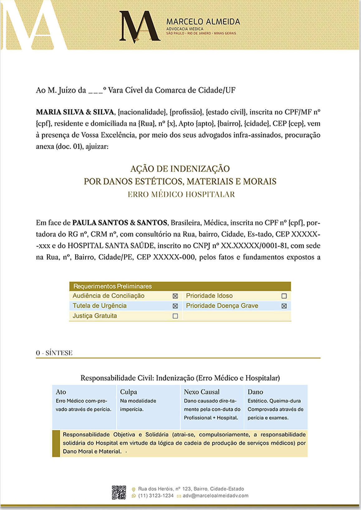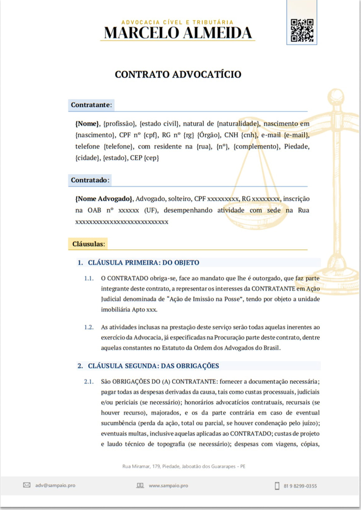Você pode alterar cores, brasões, fontes, logotipos e o layout das seções conforme a identidade visual do seu escritório.